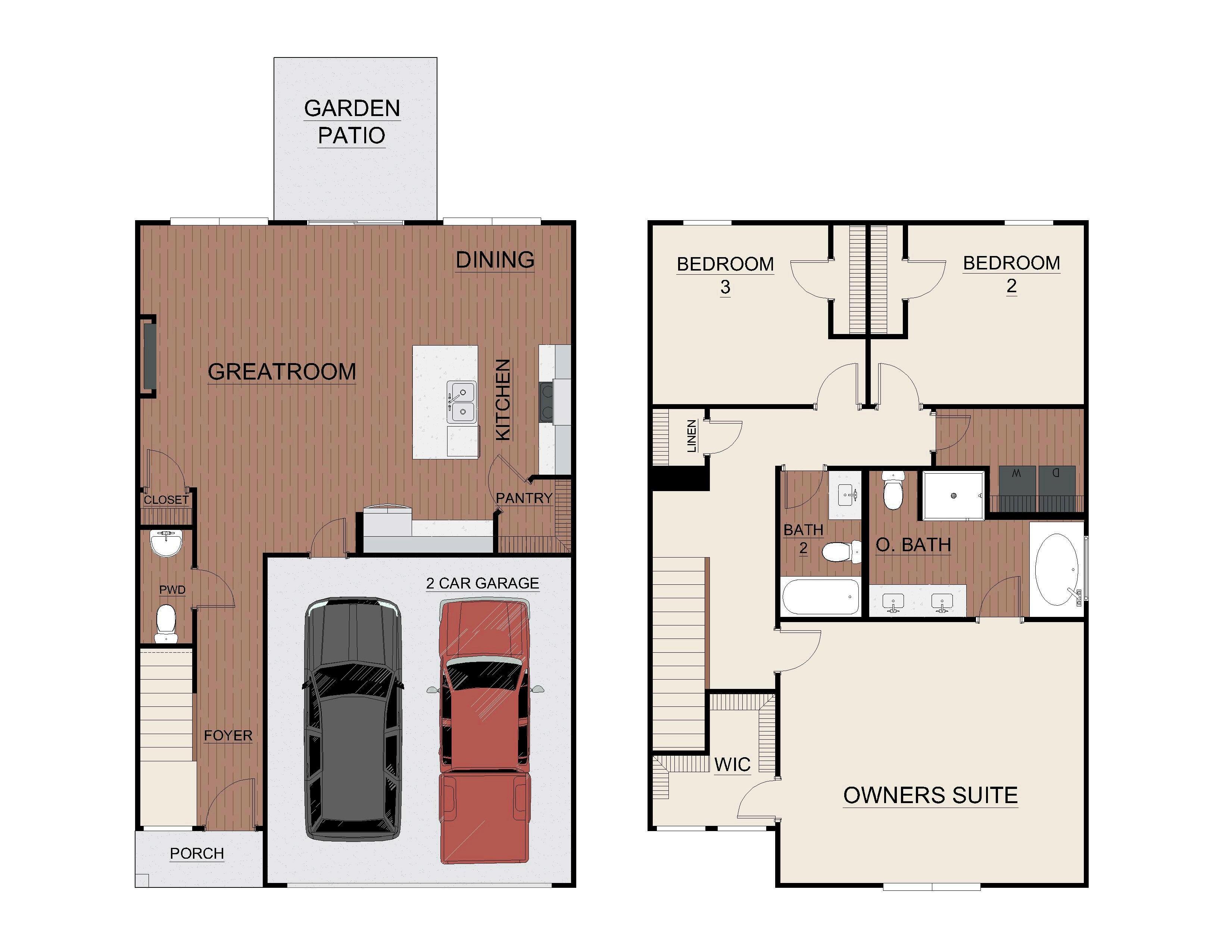 Exterior material placement and garage entry may vary with each communities design and master plan. Please see the included features page for your community of interest, visit our on-site New Home Specialist, or contact our Online Sales Counselor for more specific design information.