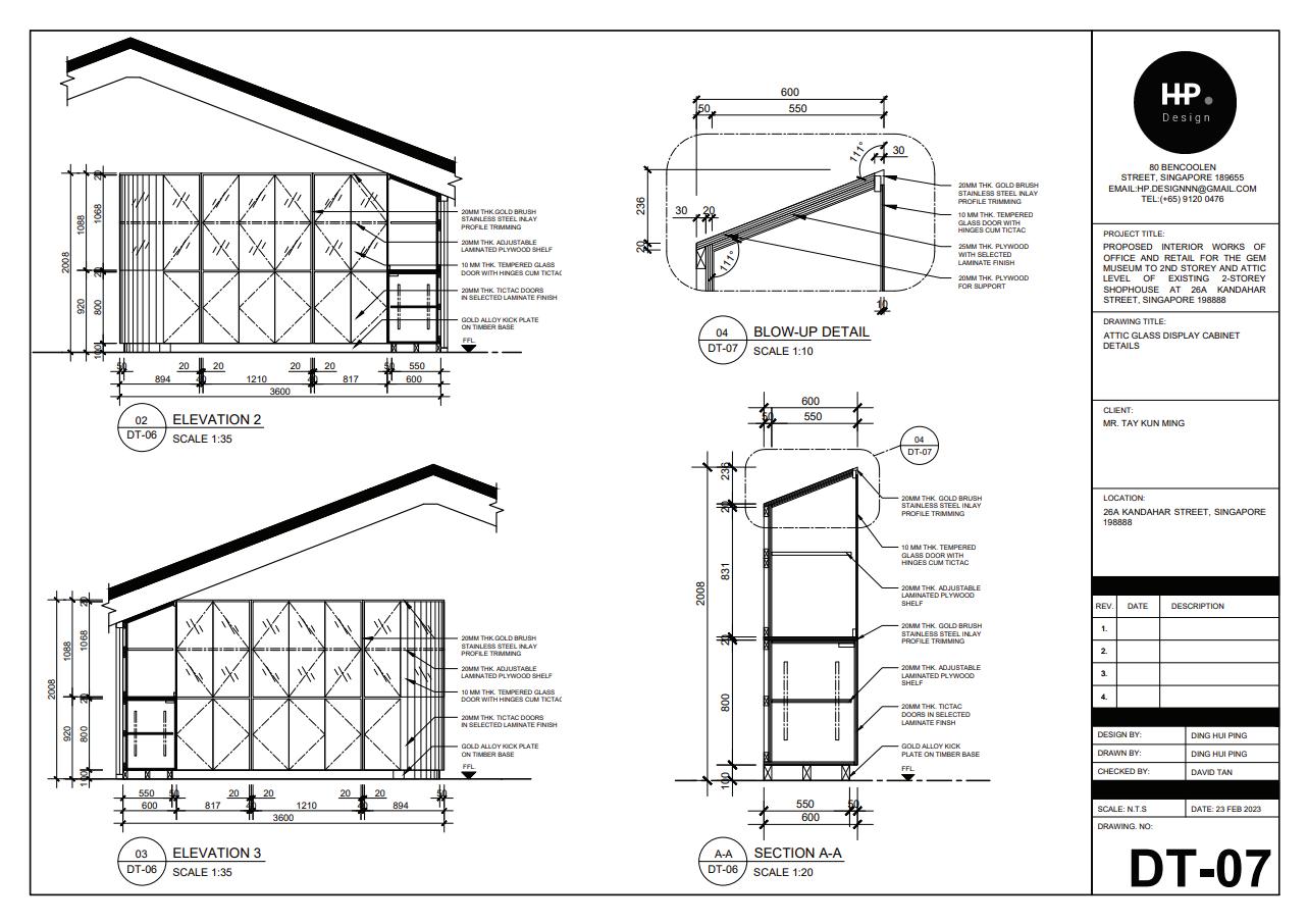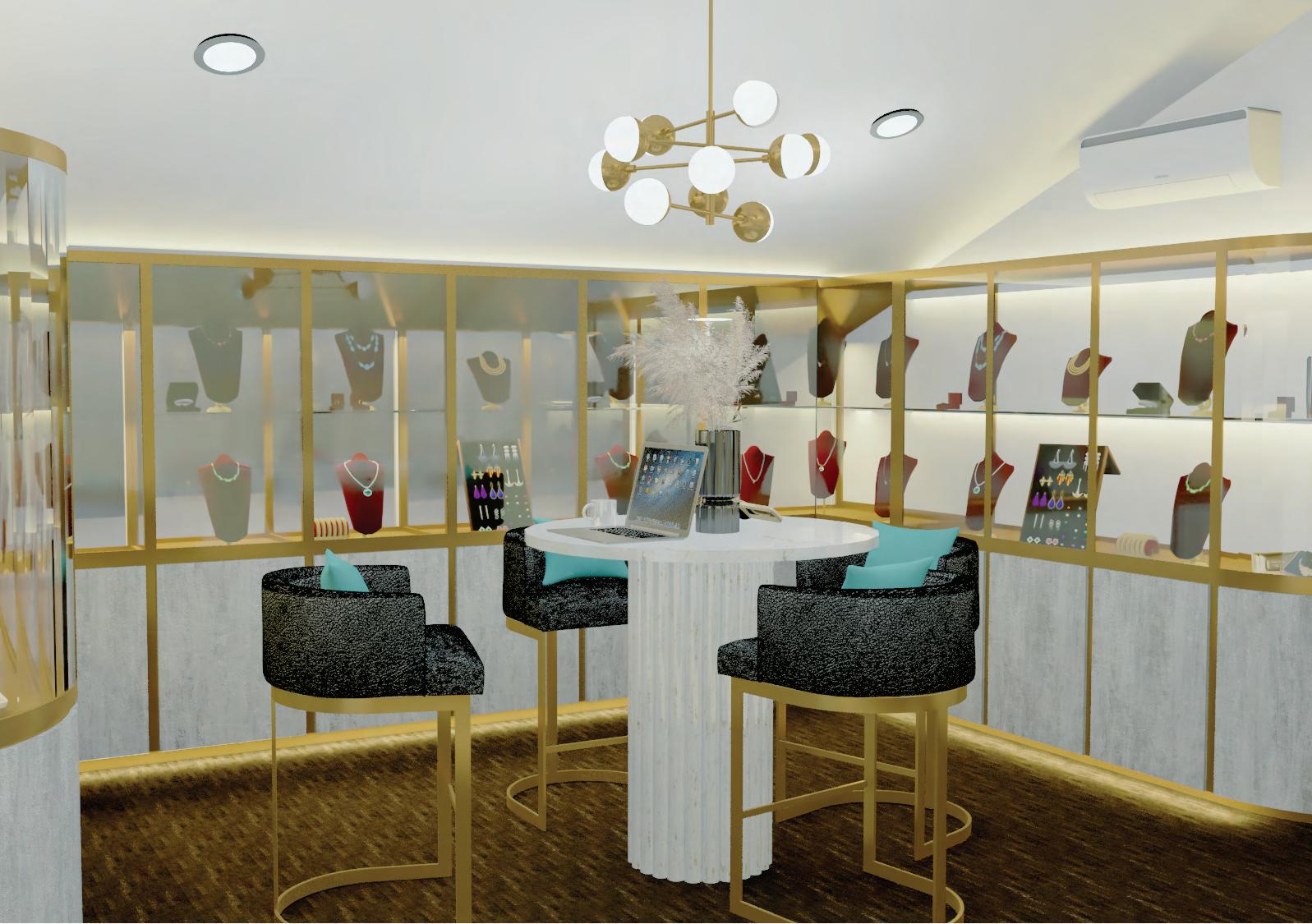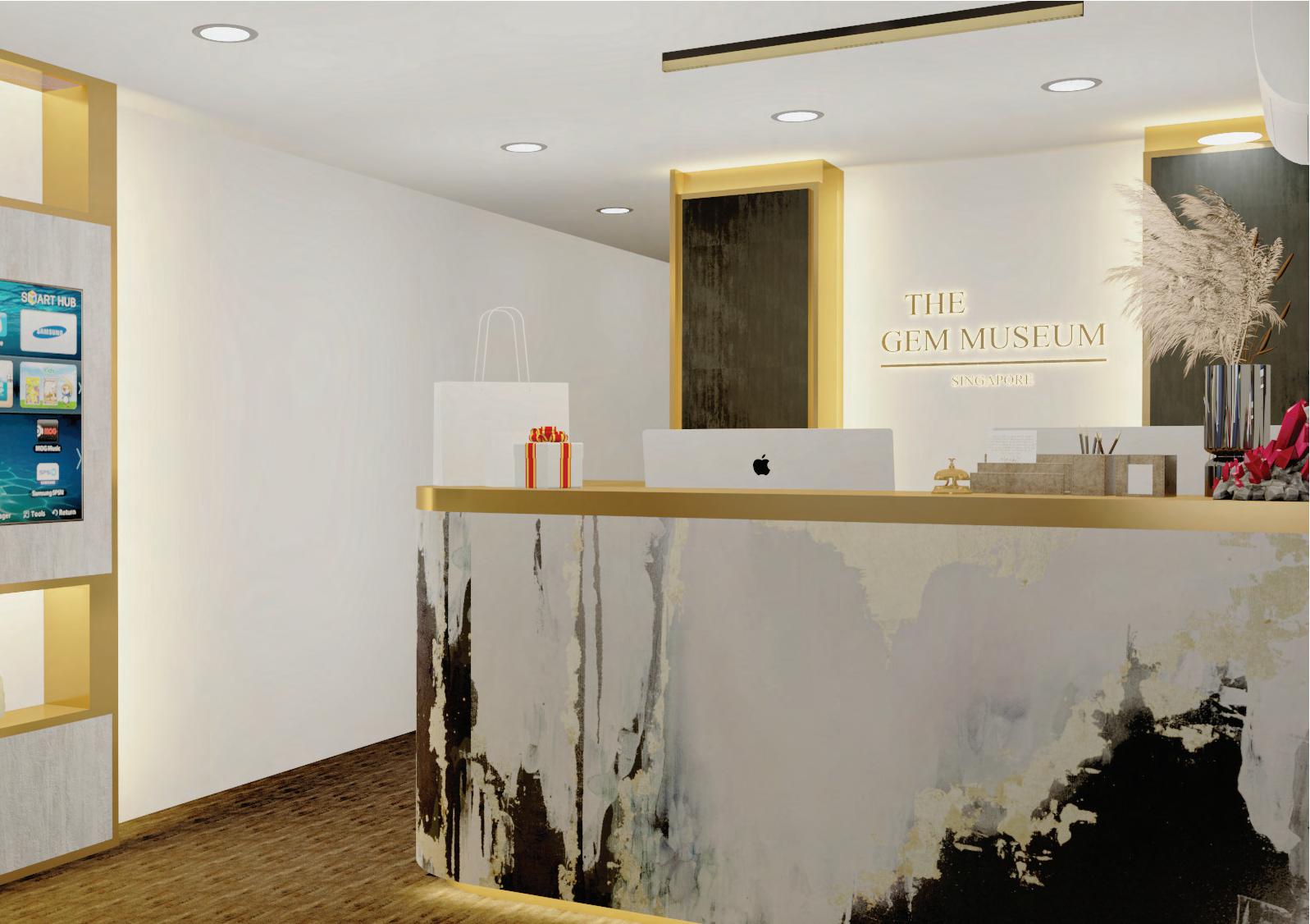Located at Kandahar Street within the charming shophouses, the Gem Museum needed a remodeling. The task was to remodel a retail + gallery + office space to the 2nd storey and a�c for the founder of The Gem Museum. The concept for my proposal was call new beginnings which derived from moonstone, and that’s the space I want to give to my client. New beginnings were connected with spa�al words such as Contrast, Transi�on & Gradient to select the materials. I picked materials such as marble to make the space more luxurious. Apart from that, aluminum joinery with a gold finish balances out the contras�ng colors and textures within the museum.