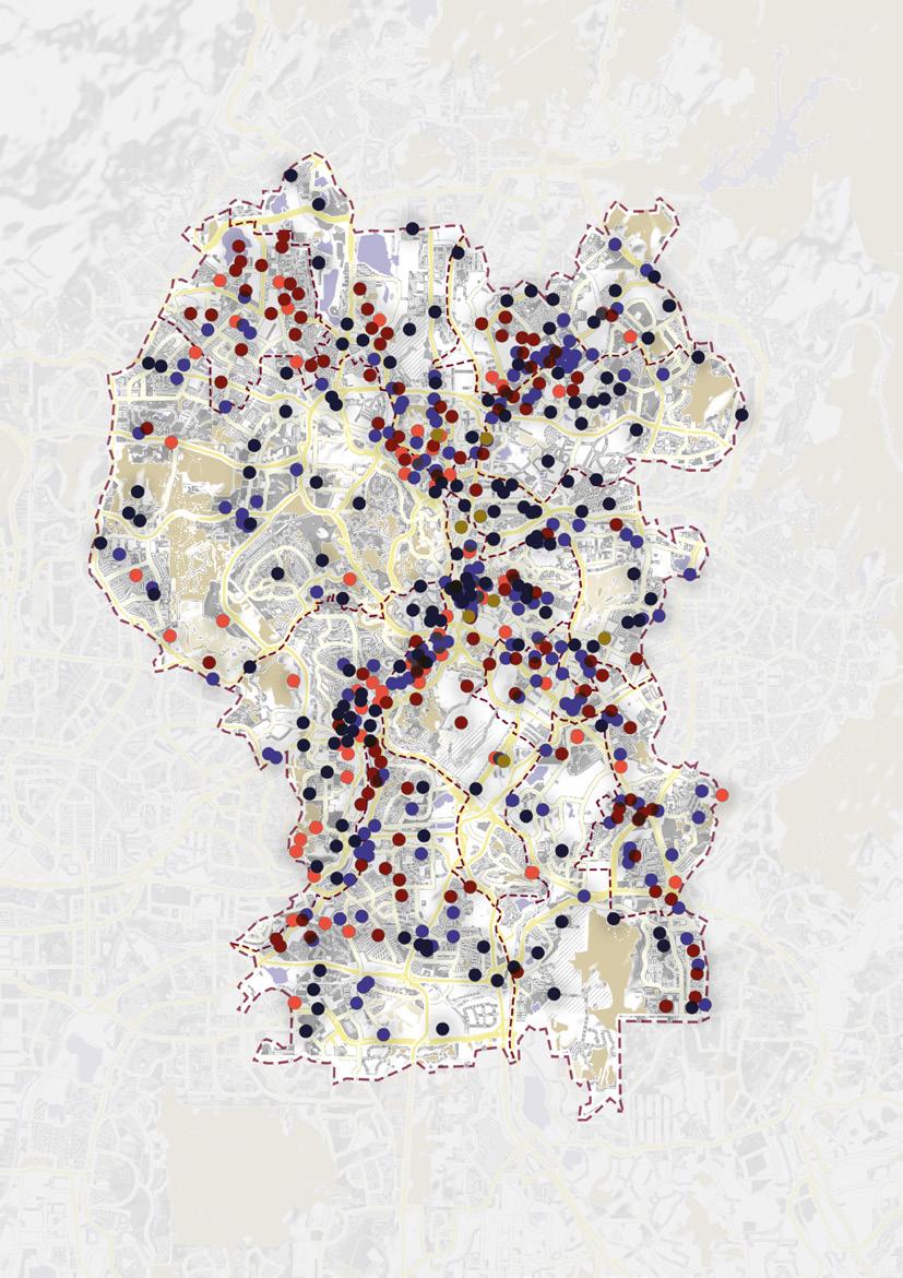 Figure 3.0.2a: Mapping of cultural places (Place of worships and cemeteries) in Kuala Lumpur. Source: Author