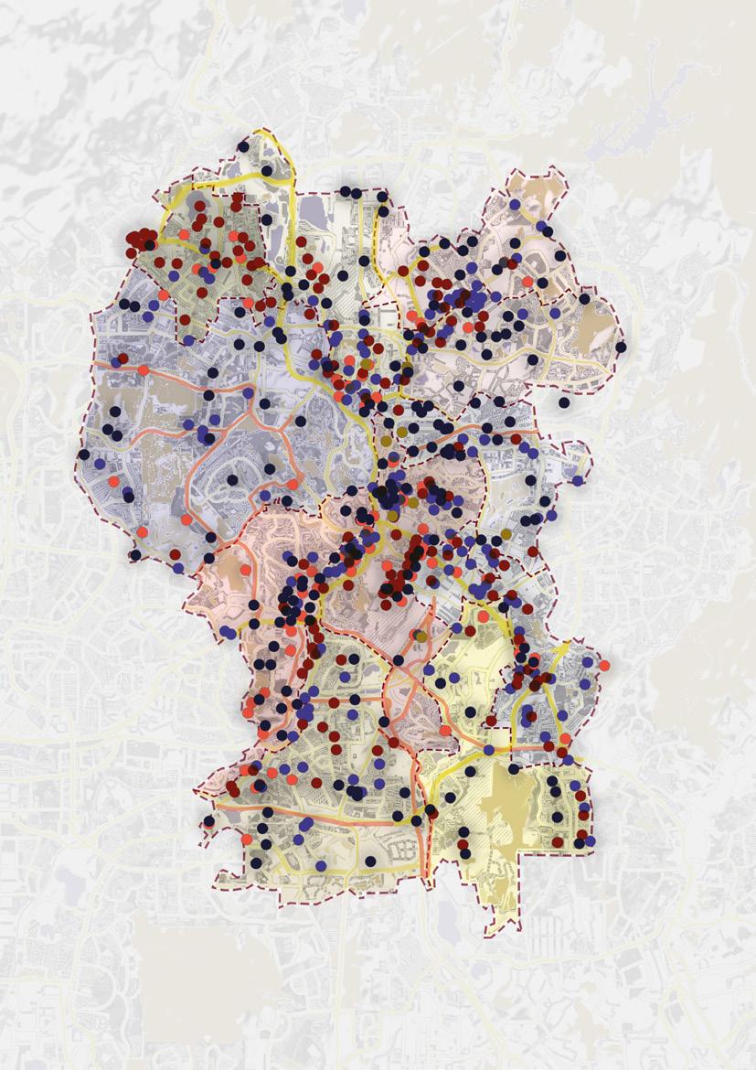 In the first phase, it is sort like a problem formulation of “what causes the segregation of the ethnic group?” and “how to tackle the problem in spatial design?“by literature review on the background of an ethnic group in Malaysia and mapping analyzing the potential infrastructure to bridge the groups.