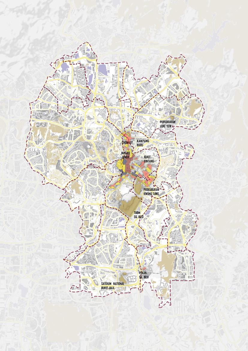 Figure 1.1.6: Landuse study of Kuala Lumpur Source: Author (Based on Kuala Lumpur City Hall. (2008b). Kuala Lumpur Existing Land use [Mapping]. KUALA LUMPUR CITY. https://kualalumpurcity.my/info-from-kuala-lumpurstructure-plan-2040-that-helps-you-decide-the-best-loca tion-for-your-home/)