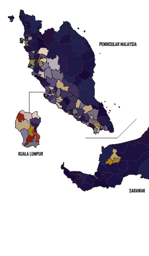 Figure 1.1.3b: Map of Bumiputra and Chinese registered voters according to 2008 electoral dis trict. This can be taken as a close approximation to the actual ethnic distribution in Malaysia. Source: A.(2008,April19).EstimatedpopulationdensityinMalaysia in 2010 [Mapping]. Wikipedia. https://aseanup.com/mar ket-analysis-malaysia/