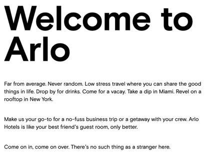 To the right is Arlo’s website rebrand vision board.Thefullwebsiteisarlohotels.com