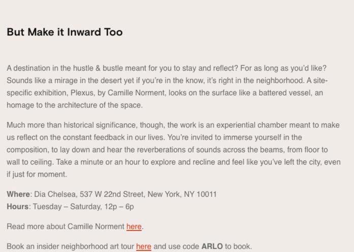 Specific Miami (& Switzerland) Art Week is a comprehensive experiential marketing event for press coverage and guest experience, as well as gatheringglobalconsumerinsights.Eachhotelhadveryspecifictone,look,feelandreputationtouse.Whenitwasn’tentirelythere(Arlo,Cadillac)it hadtobecreative.Examplesincludewebcontent,emails,partnershipcuration,designandprogrammingfor1Hotels,Autograph,ArloandFaena.