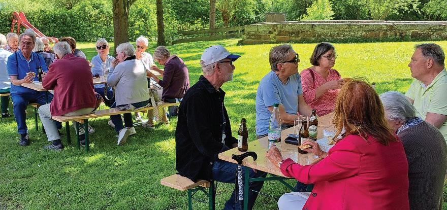 Grill-Ziel beim „Ohmtal-Stadion“: ja – ein schöner Platz unter schattigen Bäumen, dazu ein leckerer Imbiss von lieben Heinzelmännchen vorbereitet. Obwohl weniger spektakulär als die vorherigen Stationen, vielleicht doch die wichtigste Stelle der Fahrt. Hier sitzt man im Schatten beisammen, es gibt viele Gespräche, Spaß, viel miteinander. Man lernt sich besser kennen. Anonym bleibt hier keiner. Jeder findet ein offenes Ohr, und bei anfallenden Arbeiten ist immer eine Hand bereit. Wer kann, hilft nach Kräften. Auf die Leute kann man sich verlassen – ein gutes Gefühl!