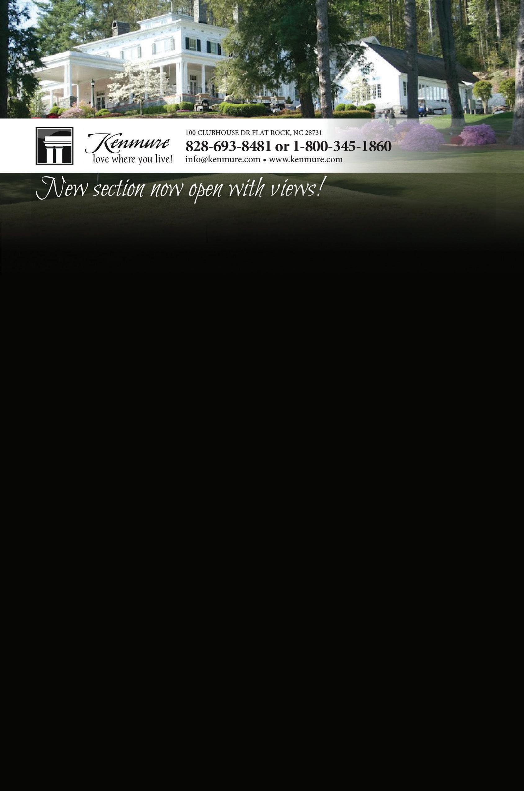 see this affordable, established gated community with mountain views and award-winning Golf Course, Clubhouse, Restaurant & Lounge, Sports Complex with Pool, Tennis, Pickleball, Bocce Ball & Fitness Center. NEW HOMES, DUPLEXES and TOWNHOMES View lots available. Contact the On-Site “Home Team” Specialists at Cummings Cove Realty 20 Cummings Cove Parkway • Hendersonville, NC 800-958-2905 I 828-891-5848 Monday - Friday 9-5 Saturday 10-4 and Sunday 1-4 by Appointment Take a virtual tour at www.CummingsCove.com Come see this affordable, established gated community with mountain views and award-winning Golf Course, Clubhouse, Restaurant & Lounge, Sports Complex with Pool, Tennis, Pickleball, Bocce Ball & Fitness Center. NEW HOMES, DUPLEXES and TOWNHOMES View lots available. Contact the On-Site “Home Team” Specialists at Cummings Cove Realty 20 Cummings Cove Parkway • Hendersonville, NC 800-958-2905 I 828-891-5848 Monday - Friday 9-5 Saturday 10-4 and Sunday 1-4 by Appointment Take a virtual tour at www.CummingsCove.com