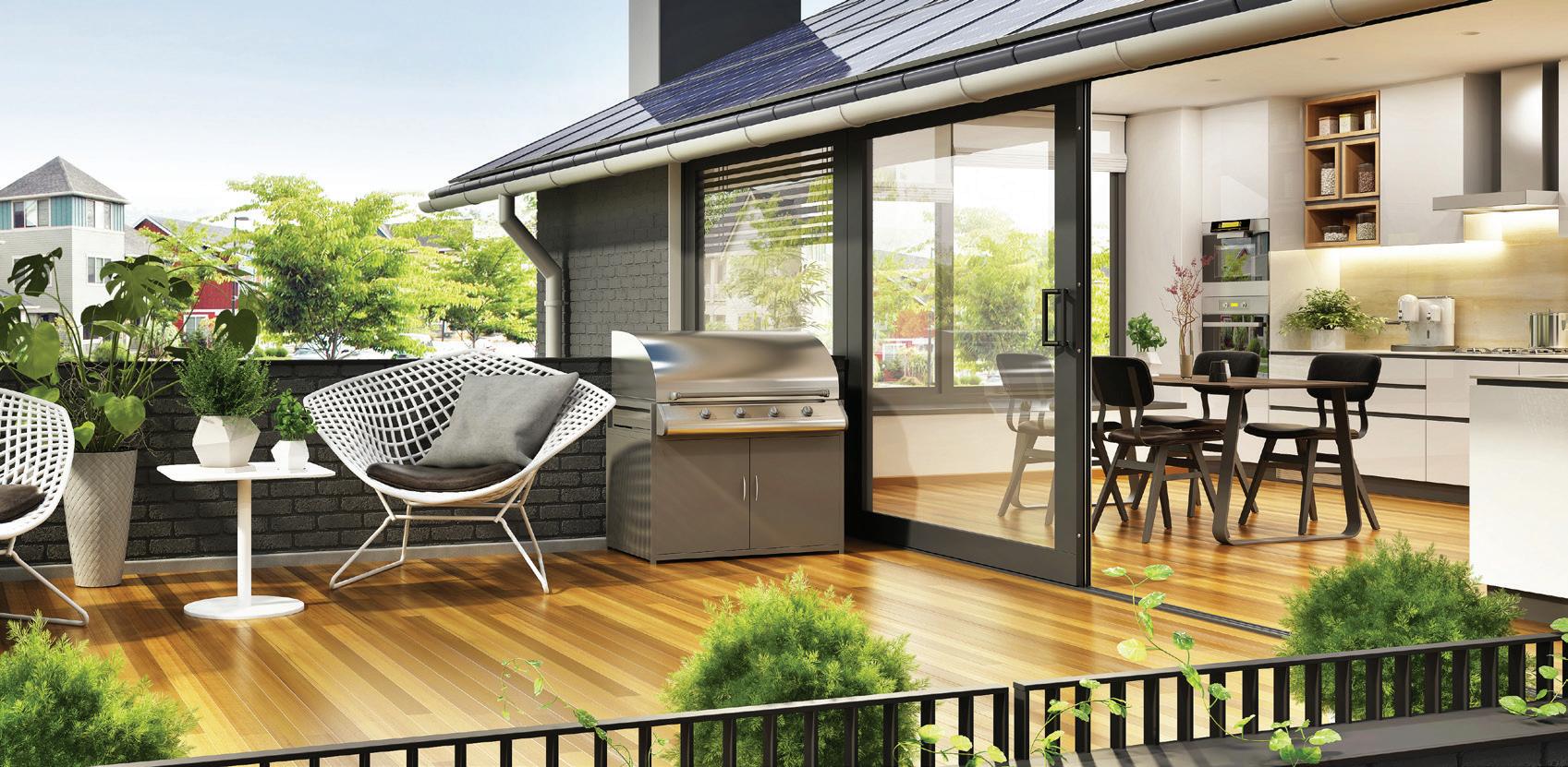 A standard hinged door consumes 10-14 square feet of floor space to swing open and shut, putting kitchen space at a premium. Single or converging wall-mount sliding doors allow you to utilize this floor space for kitchen furnishings, storage, extra mingling room for guests and more. They also give kitchens a more spacious look and can enhance your home’s design flow, making it more welcoming and facilitating movement between rooms, which is essential for gatherings and larger families with children.