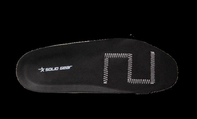 The Orthopedic PreFabricated Footbed from Solid Gear comes in different arch heights and provides exceptional breathability and comfort. The unique technology from Customized, using bio-based Pebax® Rnew® materials, provides high energy return at every step, keeping you less tired. Recycled PU foam and ESD properties. Winter insulation made of Merino wool and polyester. Certified with shoes and boots from Solid Gear.