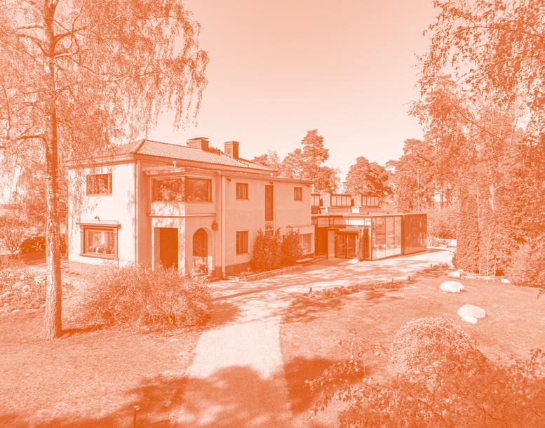 att de lät bygga den här villan 1938. Till utseendet påminner den på många sätt om en italiensk villa, med fin utsikt ut mot havet. Idag är den till största del bevarad i sin ursprungliga form, med en ny entré tillbyggd under 2021, och bjuder in till upplevelser av skönhet, kunskap och medveten närvaro, säger Lotta Nylund, intendent på Villa Gyllenberg.