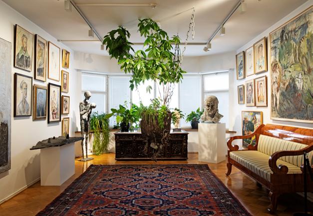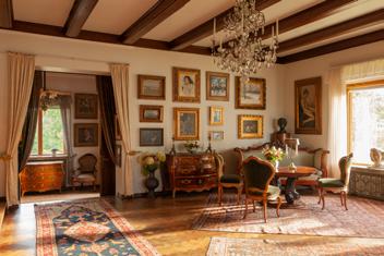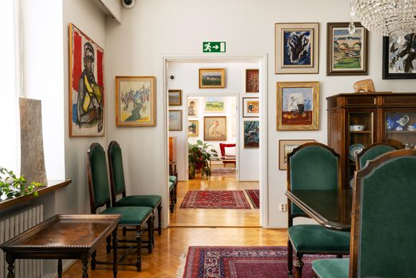 – Det är onekligen en helt unik miljö, med tavlor från golv till tak, skulpturer i nästan varje vrå, antika möbler och vackra, gedigna mattor. Resultatet är en intim atmosfär där besökaren kan känna av tidsandan och komma nära den konstälskande samlaren Kirpilä, berättar Johanna Ruohonen, museichef Konsthemmet Kirpilä.