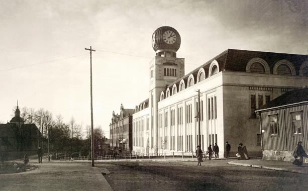 Strengbergs tobaksfabrik kring 1910. Fabrikens klocka är ett landmärke staden.