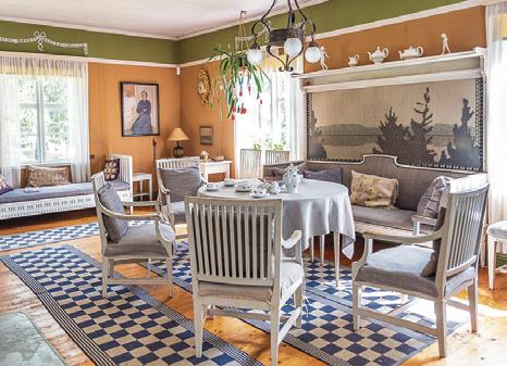I salen har Maja Fjaestad lagt sin hand vid färgsättning och dekor av väggar och möbler. Den lummiga och välskötta trädgården bjuder in till sinnesro.