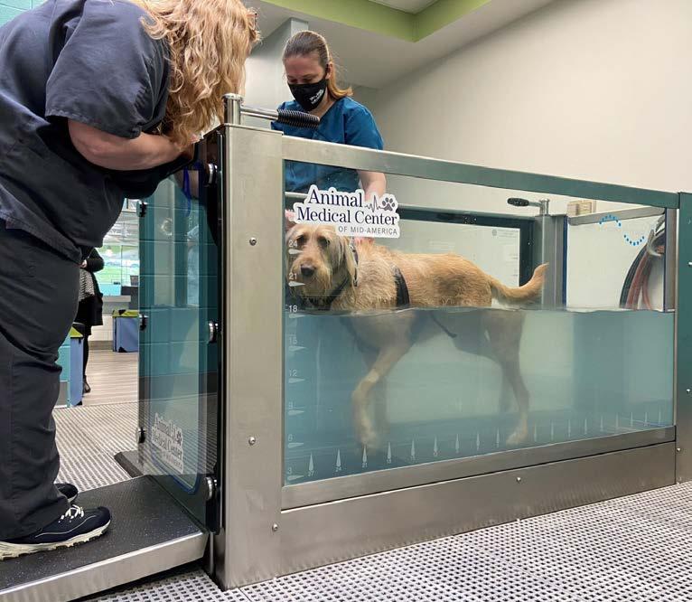 Humane Society of Missouri shelter animals also benefit from our Integrated Veterinary Pain Management Center services. Recently, Bruno, who was hit by a car and suffered a broken pelvis, received laser therapy to reduce inflammation and underwater treadmill therapy to hasten his recovery from surgery.