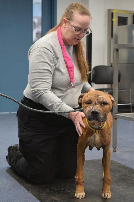 Despite what she had been through, Peyton greeted her new friends at HSMO as they prepared to help her on her healing journey. The process would take months, but Peyton showed her resilient spirit by wagging her tail and keeping a calm, kind demeanor as her wounds were cleaned day after day.