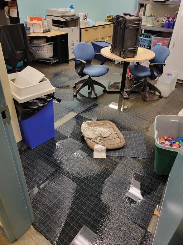 In the early morning of July 26, rainwater started cascading into the lower level of the Best Buddy Center, which includes 106 animal cages, storage room, animal exam rooms, and foster, and volunteer spaces. The water quickly rose to a height of 24 inches! By 7:30 a.m., three staff members had moved all animals to safety. The ACT team was mobilized to wade through the water to save whatever they could — computers, training equipment, supplies, and small appliances and carry them up to the main level.