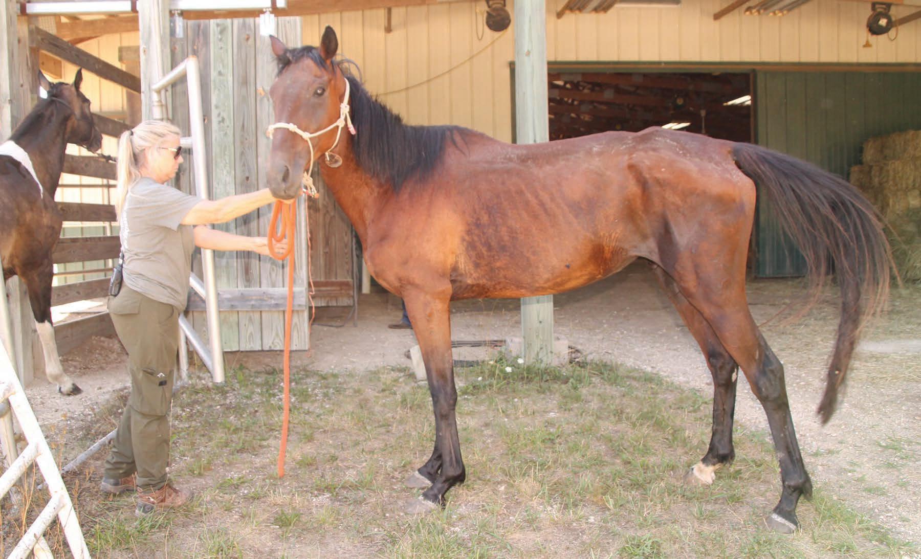 fearful as she was patiently coaxed out of the horse trailer into new surroundings. A long-unaddressed dental issue had been making it difficult for her to chew and eat, leaving her hungry and malnourished.