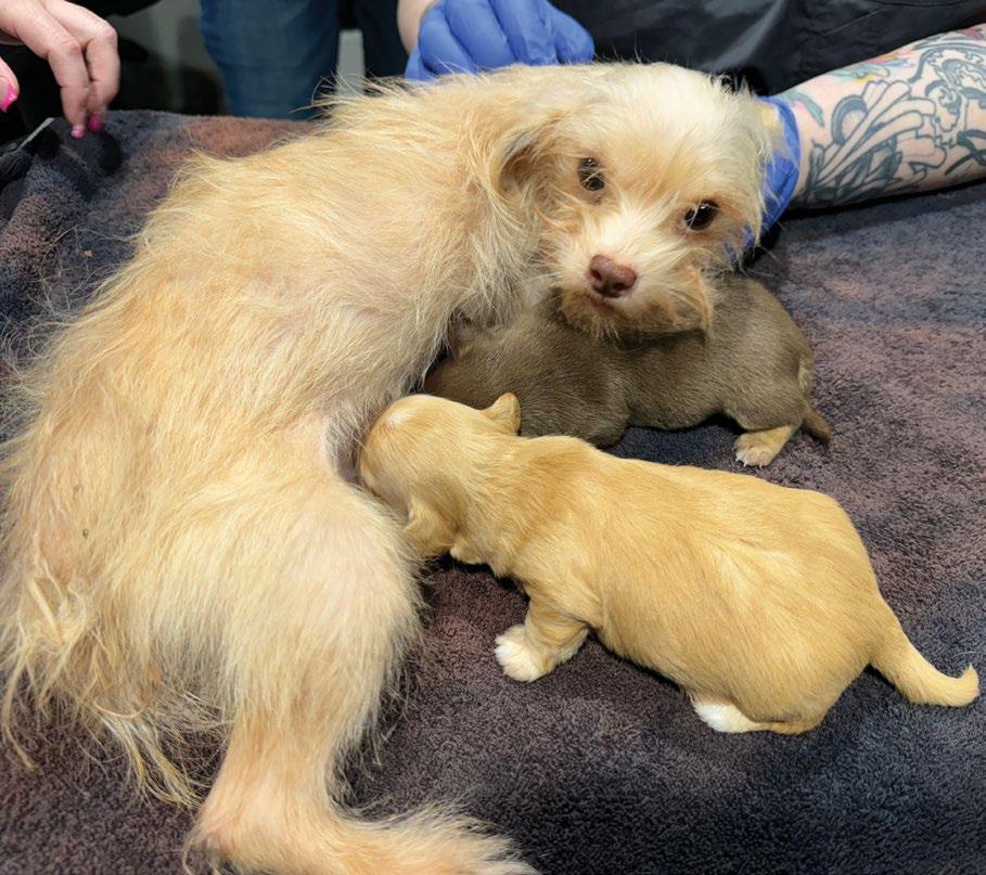 Cha Cha was one of more than 20 animals living in unsanitary, hoarding conditions. Amidst the chaos of neglect and confinement, Cha Cha gave birth to two puppies, adding another layer of complexity to her challenging circumstances.
