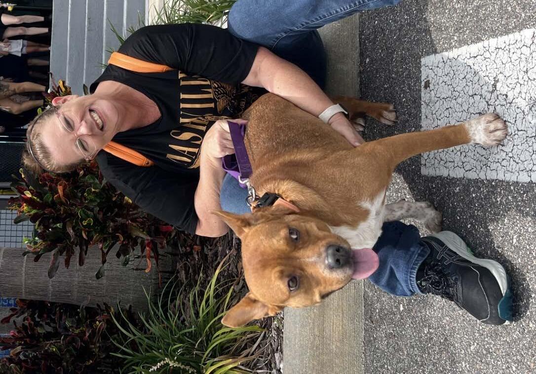 Woodrow is a fearful, heartworm positive dog who was at the shelter for more than three months. He was passed over many times during his stay at the shelter and only had a few visits. He finally found his forever home with an HSTB volunteer who took him on a Doggie Night Out. Here’s their love story: “I chose Woodrow for Doggie Night Out because I was told he had anxiety and needed a quiet, calm space. He was very nervous for a while, but we made him a safe spot in the bathroom that he would wander in and out of. I slept on the couch, hoping that he’d get a little more comfortable and start to explore, and my husband said when he got up this morning, he was sitting at my feet waiting for me to wake up! All morning, my husband kept hinting at what the next steps would be, and I knew I had to jump on the opportunity to rescue Woodrow! I don’t mind his heartworm treatment; our home is calm and never too rambunctious, and we understand needing some time to decompress and open up. We’re ready to give him all the love and patience he deserves. We’re very thankful for the Humane Society and the Animal Hospital for helping us take care of our new family member!”
