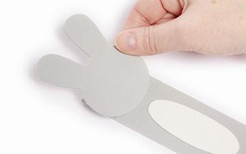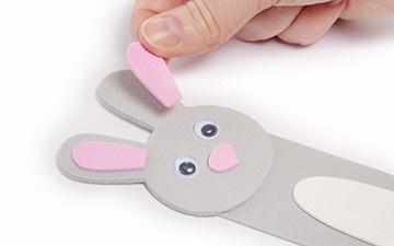 3. Peel the backing off the head pieces then stick these to the top of the rectangles. Then stick the ears and noses in place.