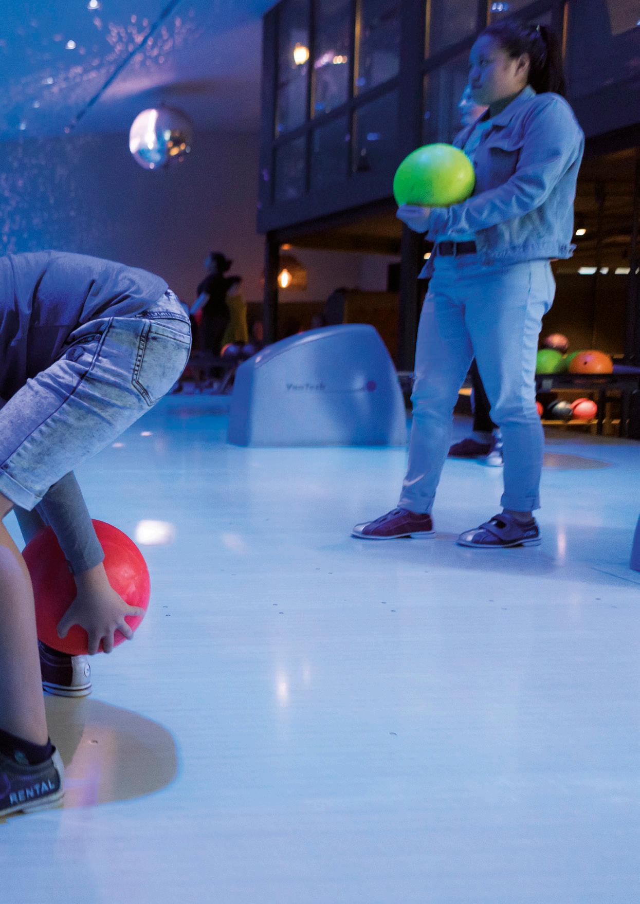 “Het voelde aardig surrealistisch om op een mooie zonnige middag af te dalen naar een schaars verlichte bowlingbaan. De afwezigheid van daglicht laat je de tijd even helemaal vergeten. En ik denk dat ook de jonge mantelzorgers, die hun uitje hier vierden, het gevoel hadden alsof de tijd even stilstond. Ik vond het super om te zien hoe er fanatiek werd gespeeld, gelachen en gestoeid. Even leek er niets anders te bestaan dan het bowlen met elkaar in het gekleurde licht.”