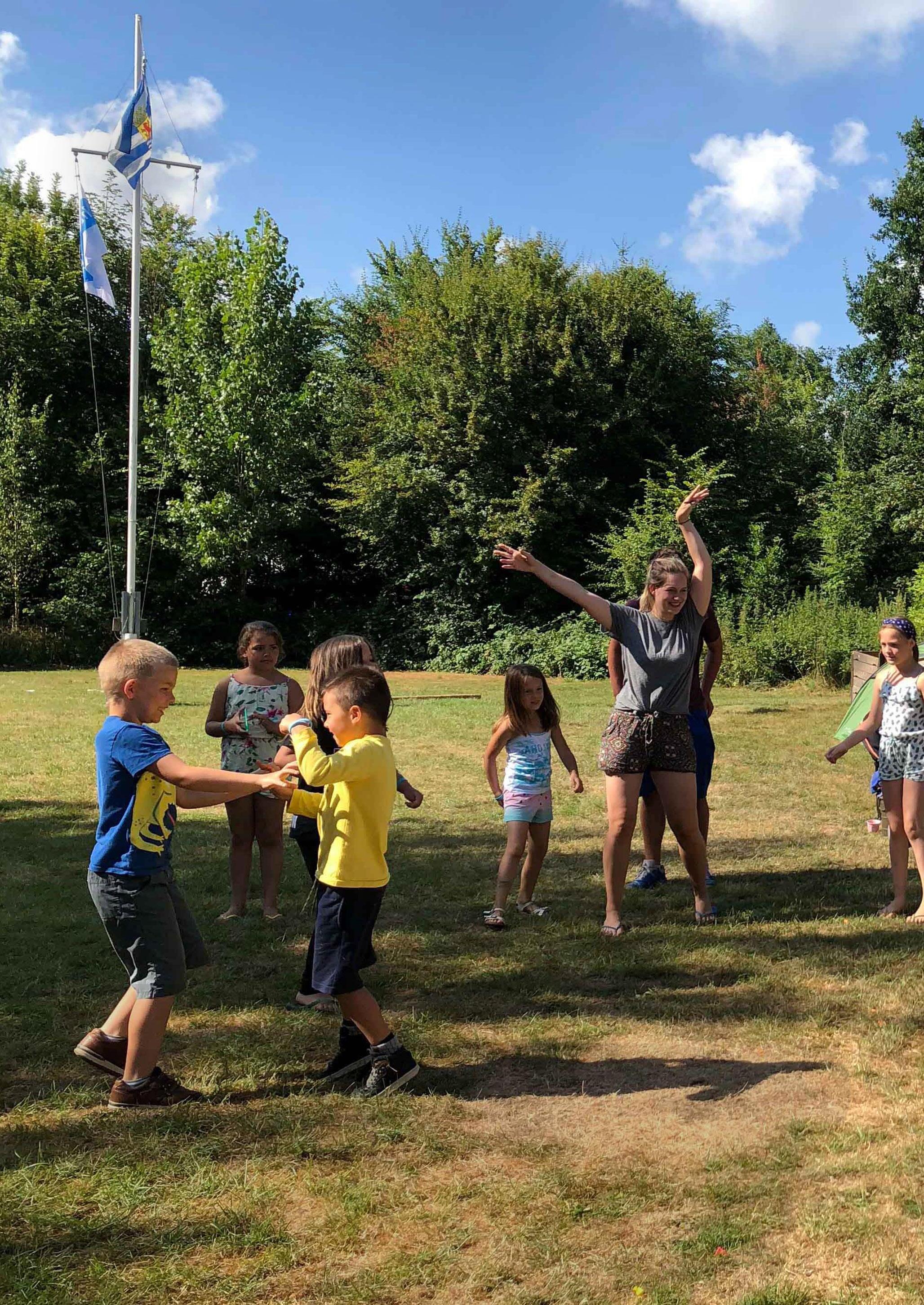 “Kun je zien welke zes vrijwilligers nieuw zijn?”, vraagt Suzanne Veenhof (40) coördinator van de kookstaf. In een kring doen 35 vrijwilligers een spel met hoepels om elkaar beter te leren kennen. Even een luchtig onderdeel tussen het oefenen van het vermissings- en ontruimingsprotocol door. “Wij verschillen allemaal, maar iedereen is even welkom. Je ziet niet wie er dit jaar voor het eerst meedraait,” vervolgt Veenhof, zelf voor het negentiende jaar vrijwilliger bij het Zeeuwse kindervakantiekamp. Tijdens dit verplichte trainingsweekend ervaren de vrijwilligers wat ze aan elkaar hebben. “Tijdens de kampweek zitten we dag en nacht op elkaars lip en de nachten zijn kort. Iedereen zal wel een keer een breakdown hebben, daarom is het goed om elkaar te leren kennen.”