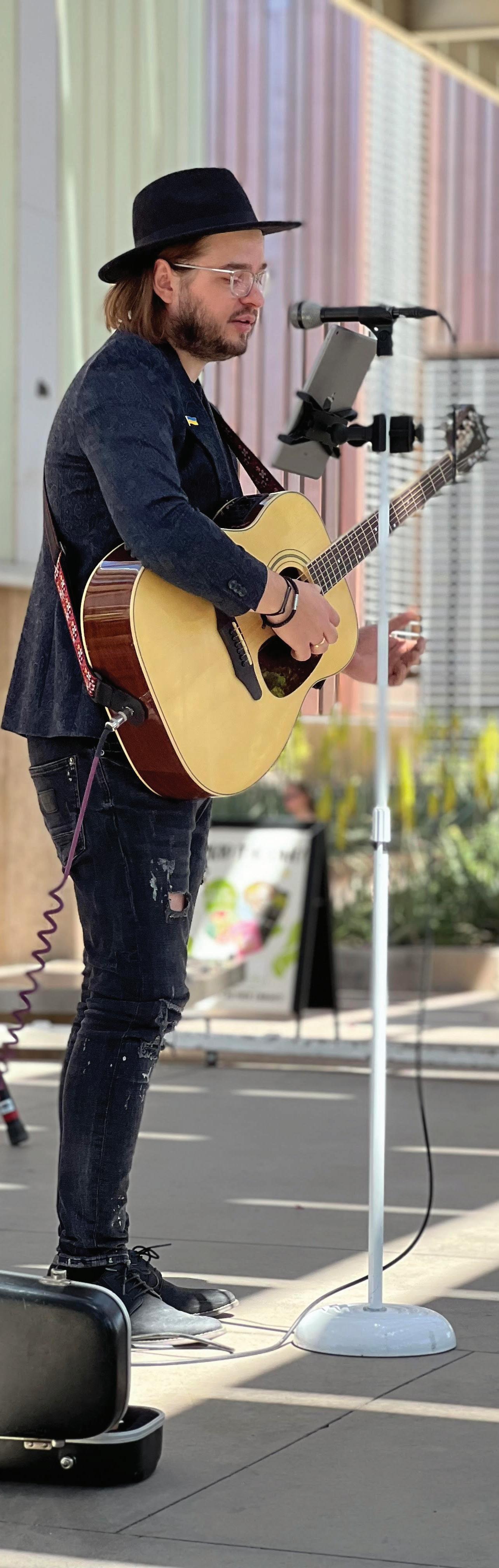 With support from STM Amplifier mini-grant funds, a team of students from the Migration, Art & Place Lab (spring 2023 invited Max Tovstyi from the band the Heavy Crawls to the Memorial Union stage to perform and and share his experience resetting in the US as a refugee from Ukraine, giving voice to global migration stories.