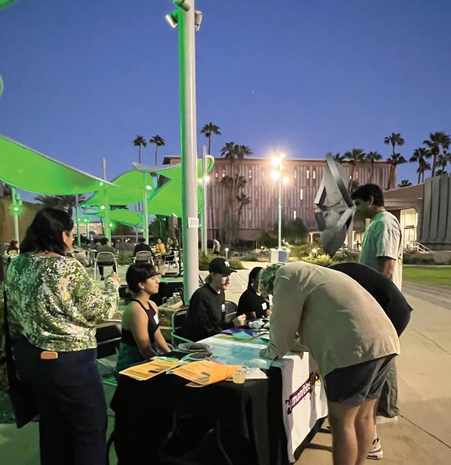 In Fall of '22, the Justice Through School Gardens Humanities Lab student-faculty team hosted an exhibit at the ASU EMERGE event, entitled “Eating at the Edges.” Students worked with Joan Barron, local artist and gardening expert, who was embedded into the course as a weekly collaborator, to design a variety of interactive activities ranging from planting their own moringa tree to dialoguing with students around their ARC GIS story maps which visually articulate their semester research on various mitigation strategies to enhance food security for all. Prior to the event, one of the student teams from the course partnered with the Humanities Lab for a social media take-over promotion highlighting their trip to the garden at Garfield Elementary School with the Mollen Foundation.