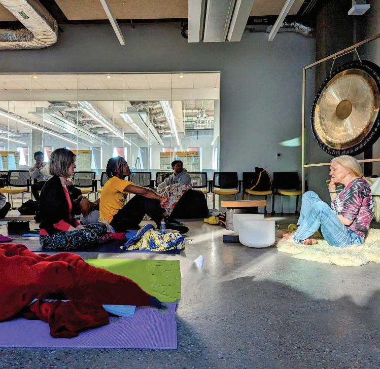 Students in the Making Noise, Making Sound? Humanities Lab (Spring 2023) experienced a sound bath hosted by Lisa Lippincott, a dedicated sound healing practitioner from the Scottsdale Sound Sanctuary, as part of their experiential research investigations into the concept and practice of sound as a form of healing.