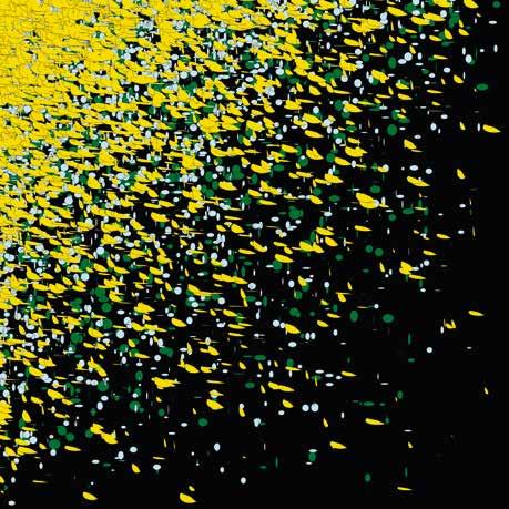This a playful exploration of the proportions in the musical scale as a cascade of shapes. size(3000,3000); background(0); for (int i=0; i<500; i+=5) { fill(188, 175, 207); ellipse (random(height), random(width), i, i*1.732); fill(83,86,90); ellipse (random(height), random (width), i, i*1.414); fill(254,221,0); ellipse (random(height), random (width), i, i*1.5); fill(255); ellipse(random(height), random (width), i, i); fill(255,0,0); ellipse(random(height),random(width),i,i*0.5); };
