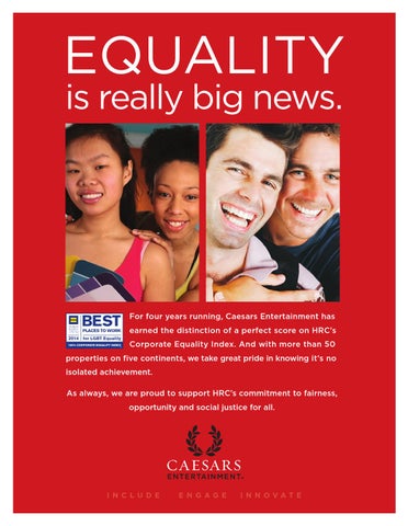 For four years running, Caesars Entertainment has earned the distinction of a perfect score on HRC’s Corporate Equality Index. And with more than 50