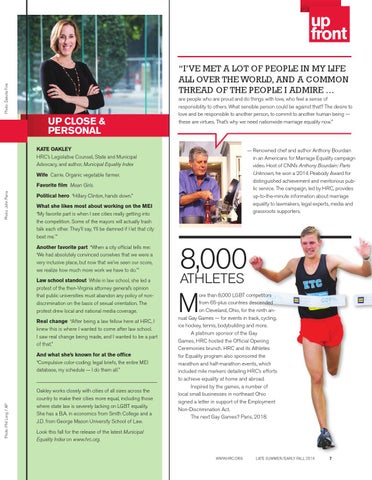 ore than 8,000 LGBT competitors from 65-plus countries descended on Cleveland, Ohio, for the ninth annual Gay Games — for events in track, cycling, ice hockey, tennis, bodybuilding and more. A platinum sponsor of the Gay Games, HRC hosted the Official Opening Ceremonies brunch. HRC and its Athletes for Equality program also sponsored the marathon and half-marathon events, which included mile markers detailing HRC’s efforts to achieve equality at home and abroad. Inspired by the games, a number of local small businesses in northeast Ohio signed a letter in support of the Employment Non-Discrimination Act. The next Gay Games? Paris, 2018.