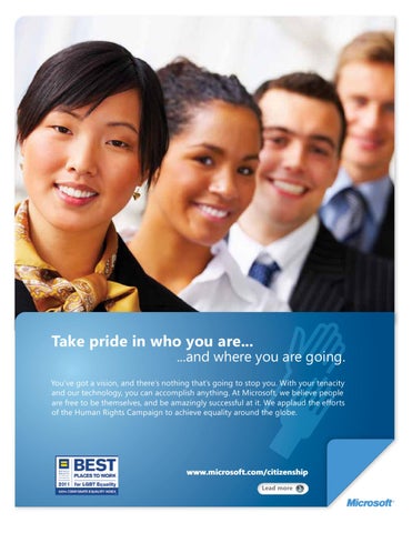 You’ve got a vision, and there’s nothing that’s going to stop you. With your tenacity and our technology, you can accomplish anything. At Microsoft, we believe people are free to be themselves, and be amazingly successful at it. We applaud the efforts of the Human Rights Campaign to achieve equality around the globe.