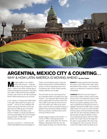 arriage equality is now a reality in parts of Latin America — Argentina and Mexico City, the largest city in the region — thanks to the efforts of lesbian, gay, bisexual and transgender groups there. Their gains were made in what seems to be the unlikeliest of places: Latin America is rife with homophobia, Roman Catholic bishops and a very full closet. A new collection of writings about LGBT politics in the region helps explain how progress was possible … and why so many challenges still remain. It also gives what may be some valuable lessons to LGBT groups in the United States. “The Politics of Sexuality in Latin America: A Reader on Lesbian, Gay, Bisexual and Transgender Rights,” the first-ever Englishlanguage reader on LGBT politics in Latin America, comes none too soon. The book is a broad mix — an interview with LGBT activist Mariela Castro (the daughter of