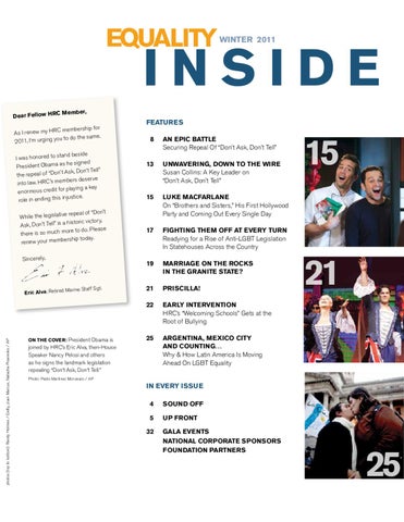 membership for As I renew my HRC to do the same. u 2011, I’m urging yo nd beside I was honored to sta he signed President Obama as Ask, Don’t Tell” the repeal of “Don’t mbers deserve into law. HRC’s me playing a key enormous credit for ustice. role in ending this inj e repeal of “Don’t While the legislativ historic victor y, Ask, Don’t Tell” is a re to do. Please there is so much mo hip today. renew your members Sincerely,