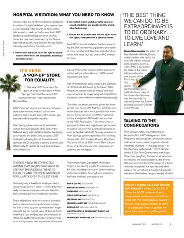 See HRC’s Hospital Visitation Guide at www.hrc. org and click on www.hrc.org/protect-your-rights for more on advanced directives and other documents. And keep your eye on the HRC website for more.