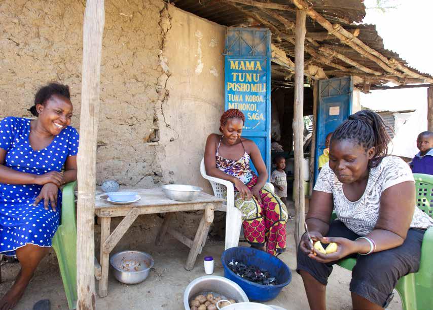 success through cooperation. In the areas of investment where their priorities are very strong—education, housing, cultural events—we find that women often use their own money to backstop and fill gaps where their husbands and partners fall short. Mark and Fiona in Kenya are a great example. They married young, and Mark was unprepared for the pressures of caring for a wife and child. Mark’s brother gifted him a business that he then ran into the ground. Often without enough food in the house, Fiona made her way over to a Somali neighborhood in Nairobi where she picked up casual work washing clothes. Her family found this shameful and looked at Mark as a complete loser. Fiona stood by him, and Mark shaped up after the couple had their third child, getting work as a newspaper vendor, then building connections to become a distributor. He began saving one shilling from every paper sold and started making plans.