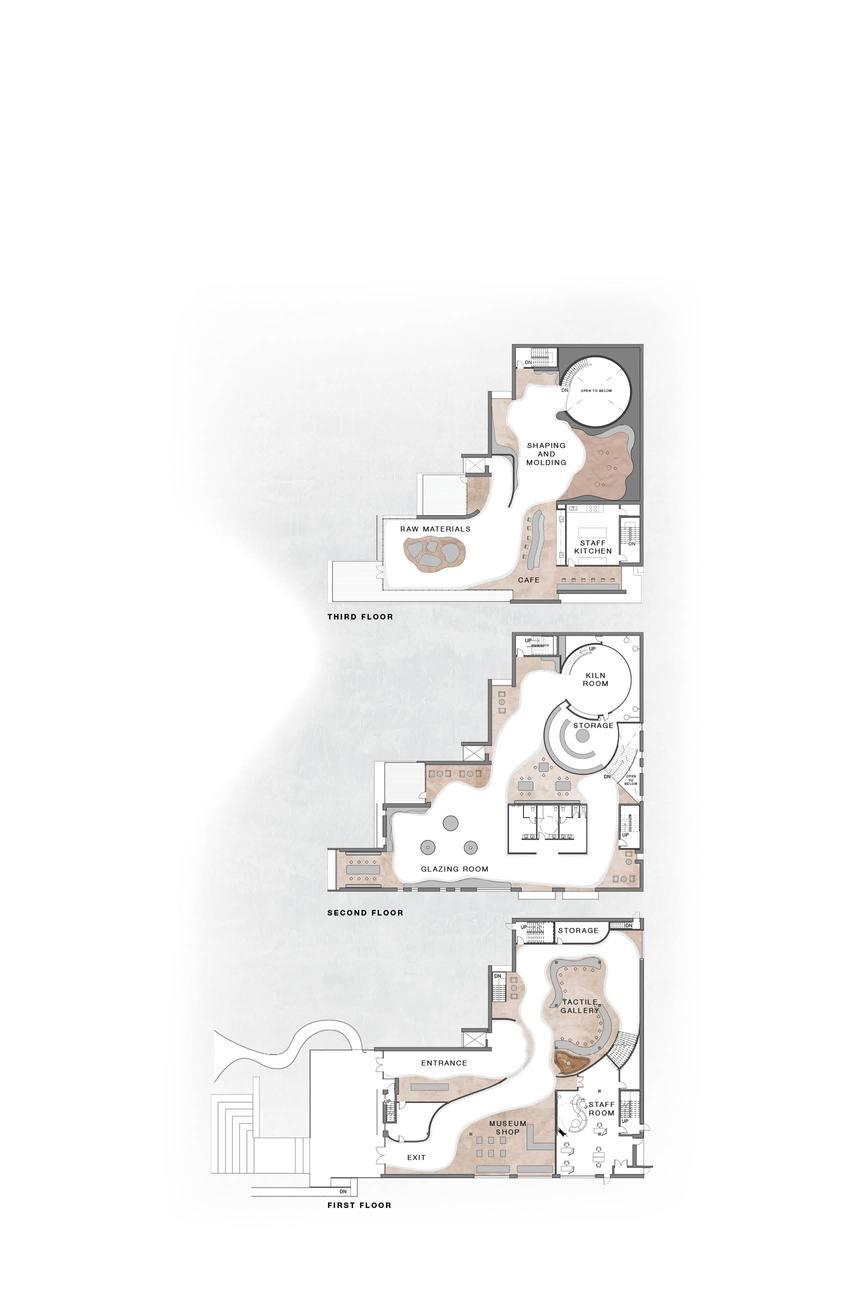Theideaof“joints”stemsfromthebuilding’s segmented form,whichnaturallyshapeddistinct spatial experiences eachrepresentingasymbolicstagein the woodworking journey. Inspired by traditional joinery, the eight joints reflect connections between culture, craft, and learning: The Beginning of the Journey, Carving and Craftsmanship, Learning and Education, Sustainability and Preservation, Spiritual and Ceremonial Significance, Cultural Exchange, and Legacy and Future Through Craftsmanship Three joints are emphasized: the first marks the maker’s initial bond with the material; the fourth highlightssustainabilityandreverenceforcedar;andthefinaljointsfocusonpassingdownculturalknowledgethroughenduringcraftsmanship