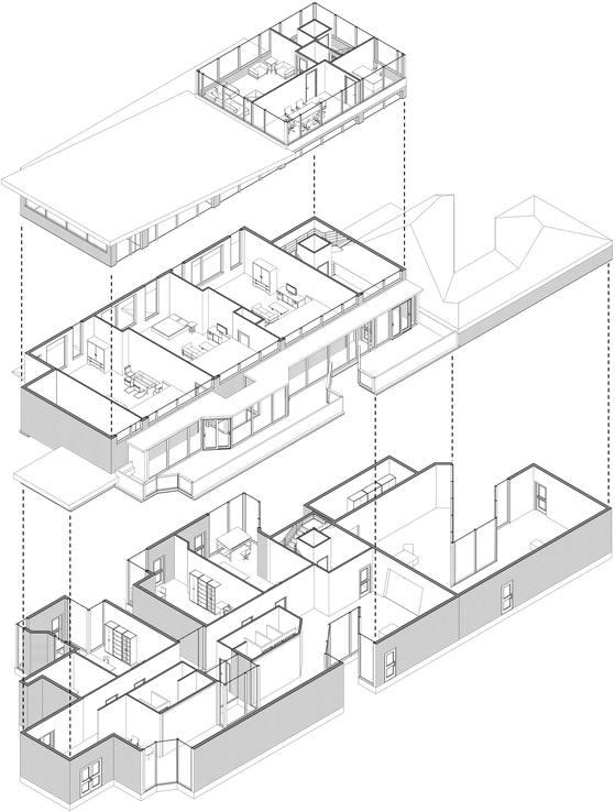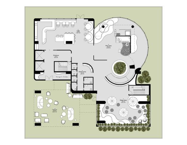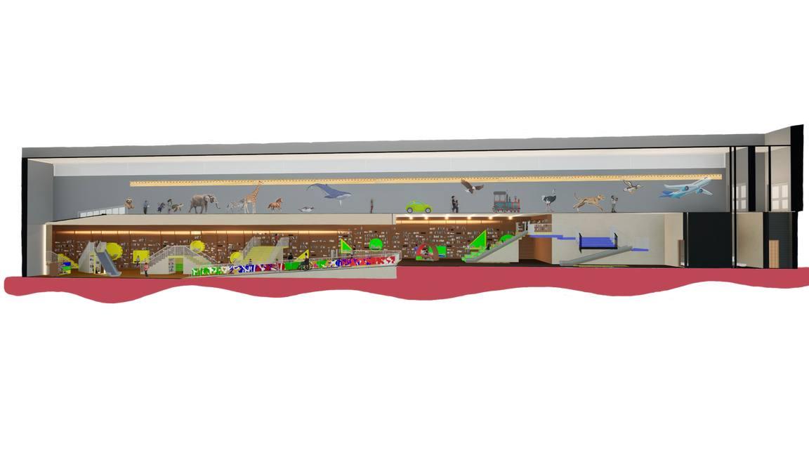 The project transforms a two-storey building in Toronto into a creative learning and wellness center. Inspired by play-based learning models like Reggio Emilia and Montessori,eachfloorservesauniquefunction:theground level is active and community-driven, with a central staircase-slide and indoor play zone; the second floor focuses on creativity and calm, featuring art studios, a mindfulness room, and sensory pods Circulation flows smoothly with curved forms, natural light, and shifting ceilingheights,supportingintuitivemovementthroughout