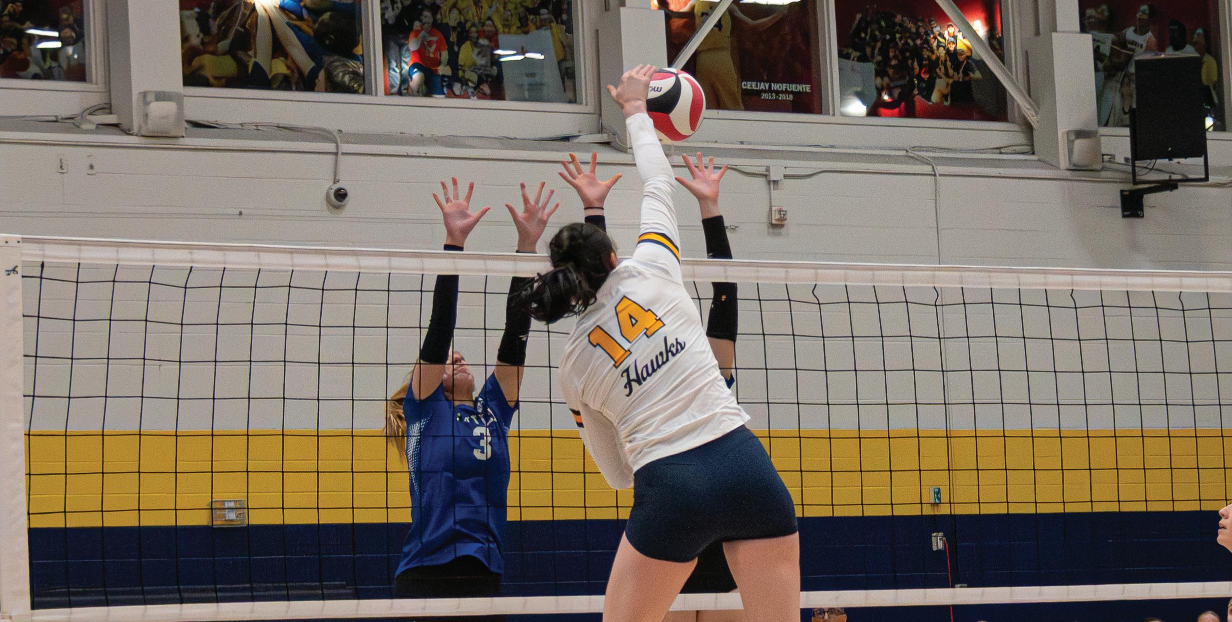 The Hawks men’s volleyball team won its home opener and held a special milestone ceremony on Nov. 1.