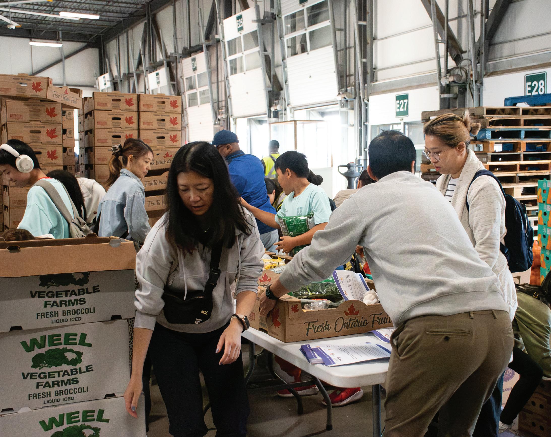 Volunteers were busy with the Children’s Breakfast Club for Thanksgiving on Oct. 4 at the Ontario Food Terminal, packing boxes of food for families in need.