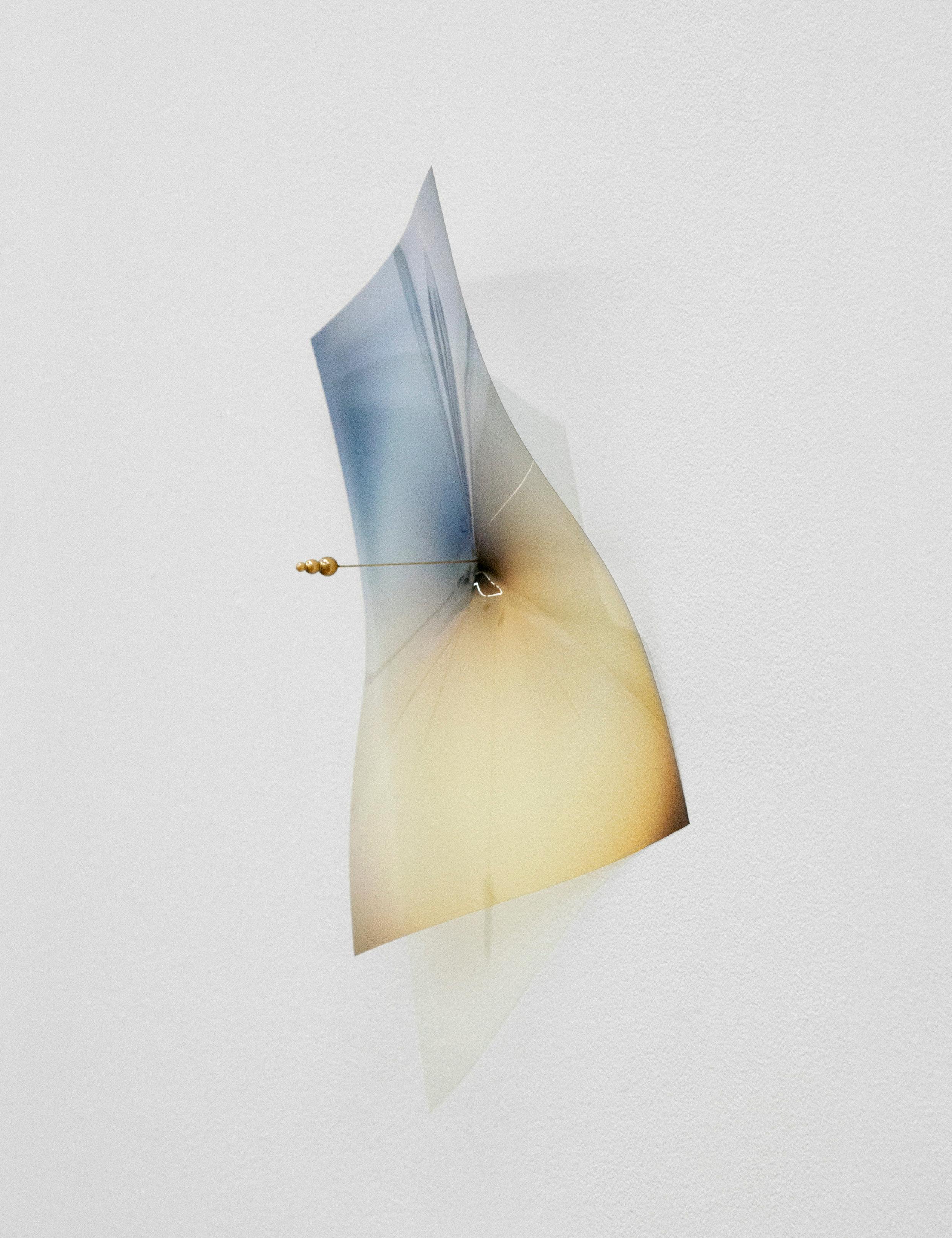 In Ammophila (2018), an unclothed torso reclines on a sand dune full of beach grass. The sun and the winds create sensual light and shadows on the cropped human figure. Bodily abstraction also appears in Sea Elegy (2018), in which a life-size plaster leg balances a folded photograph of foamy water. The artist’s fascination with water is also apparent in the fluid imagery of Ripple Ripple (2016), Silkscreen (2018), and Pool of Andromeda (2017).