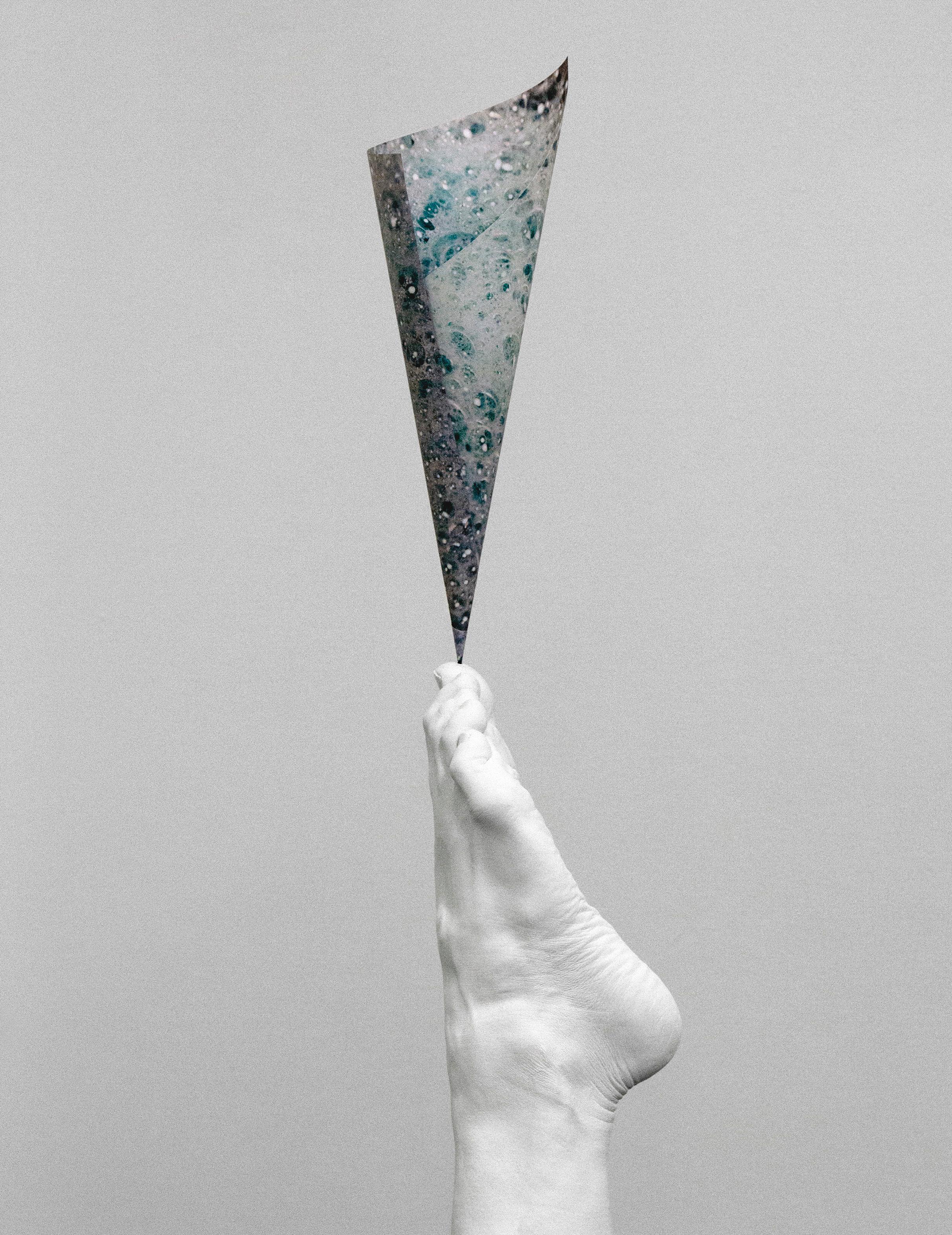 SEA ELEGY (DETAIL), FOLDED PHOTOGRAPH ON PLASTER LEG, 2018 | STEVEN BECKLY Image courtesy of the artist and Daniel Faria Gallery.