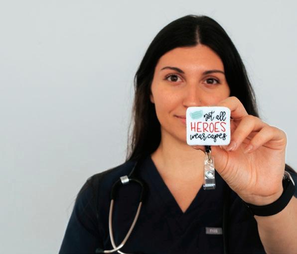 Today, Fedele’s company, which she named Coffee & Care Co, has sold over 450 badges to frontline health care staff via Etsy and through word of mouth. Fedele has expanded her designs to include messages of hope and empowerment to support her colleagues. She has also created interchangeable badge reels for different occasions and expanded her line to include lanyards, laptop stickers, and keychains that light up for nurses covering night shifts. Fedele finds solace in having a hands-on hobby. “It has been really helpful,” she says, adding that being creative has helped her deal with stress and time management.