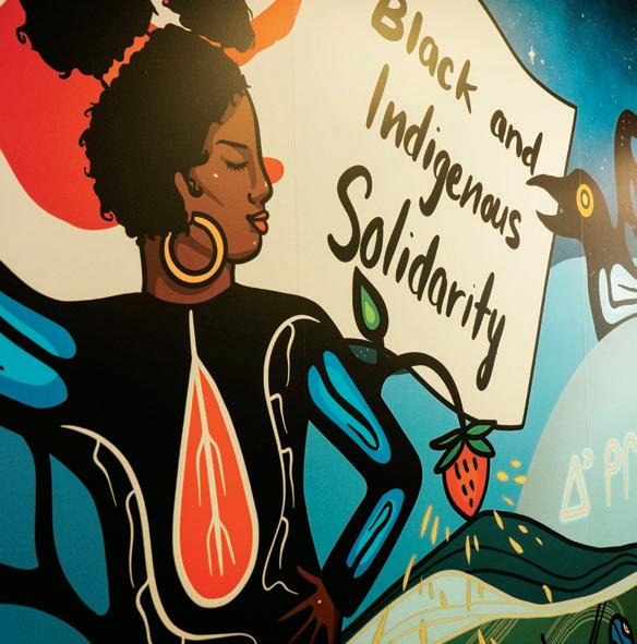 Black And Indigenous Solidarity: Visions Of Abundance (2022), mural by Chief Lady Bird located at the Indigenous Education and Engagement department, North Campus.