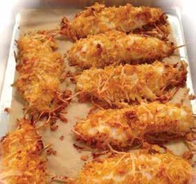 4 Roll the chicken strips in cornflake and cheese mix to coat well.