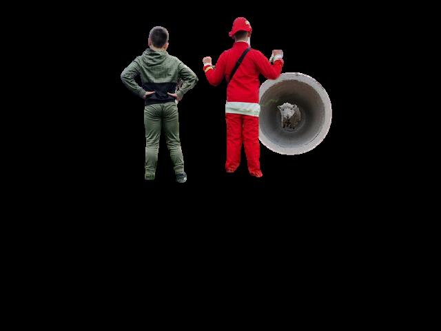 De buis was wel 60 meter! En in het midden zagen ze het schaap vastzitten.