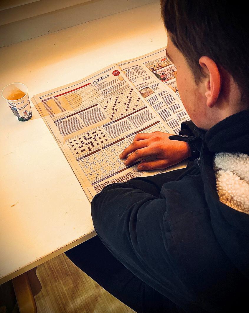 Zijnhobbyispuzzelsuitdekrant makenendanhetliefstsudoku’s. Hetgesprekkwammeerlos naarmatehetlangerduurde.