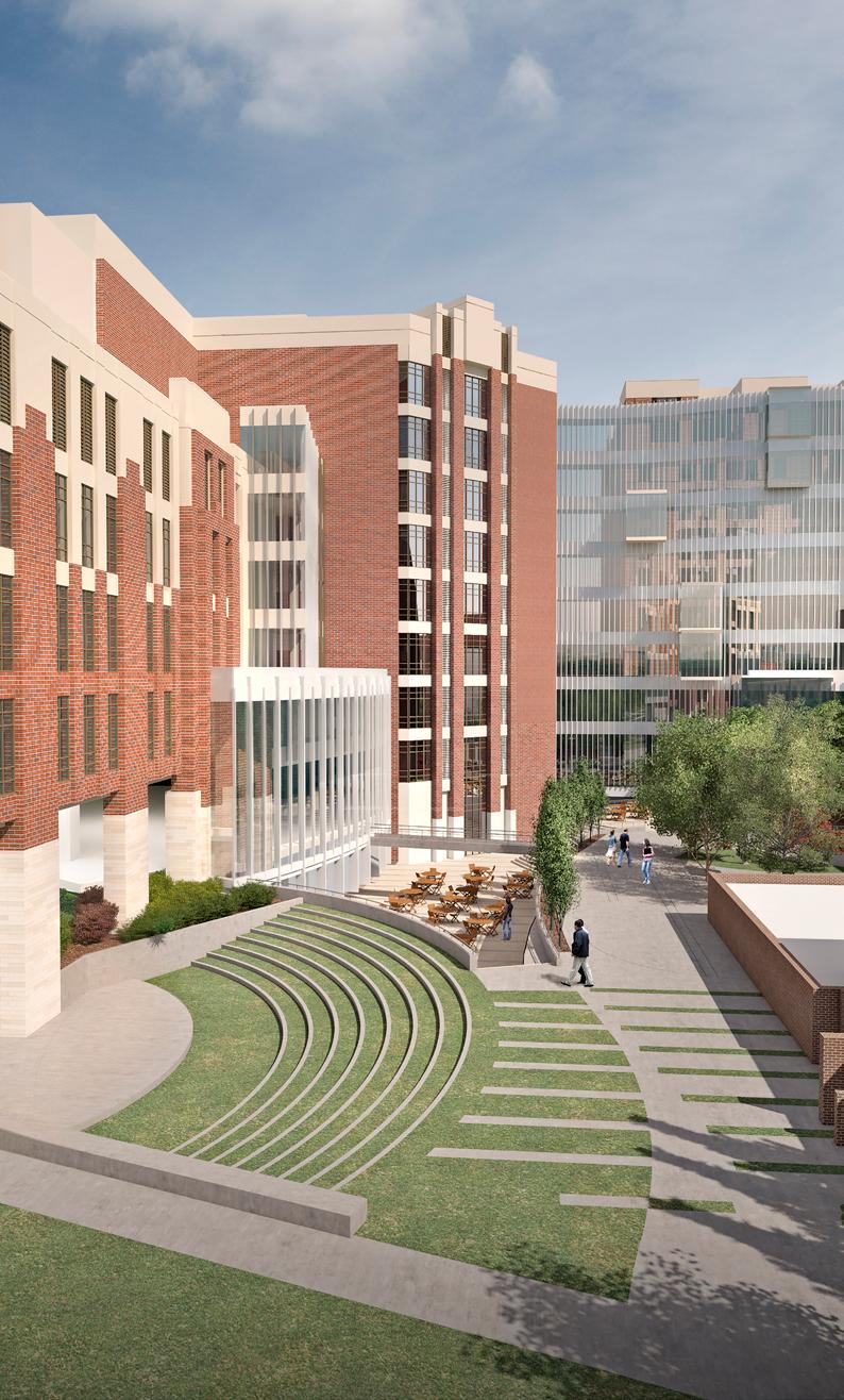 The surgery side of the building is three stories, providing outpatient specialty surgeries and care. Major departments include Medical Imaging, Administration Suite, Lab, Surgery, Sterile Processing, Pre-Op/Post-Op, and an Outpatient Pharmacy. The Medical Office Building side of the facility is a fourstory outpatient area housing three stories of clinics and one story of staff offices, staff work areas, and conference rooms. Other areas include seven separate clinic suites and one sports medicine therapy suite with an exterior exercise yard.