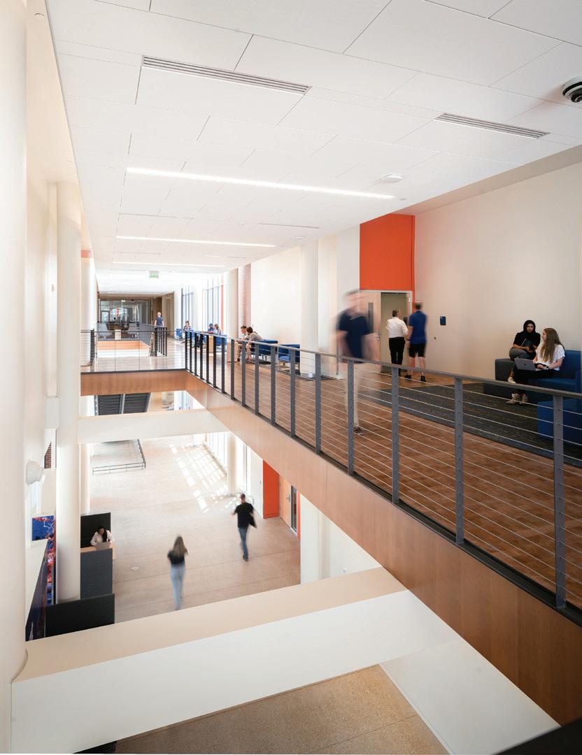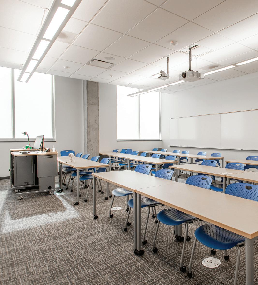 Faculty offices, adjunct faculty suites, and conferencing spaces are included at both levels of the building to promote close interaction with students.
