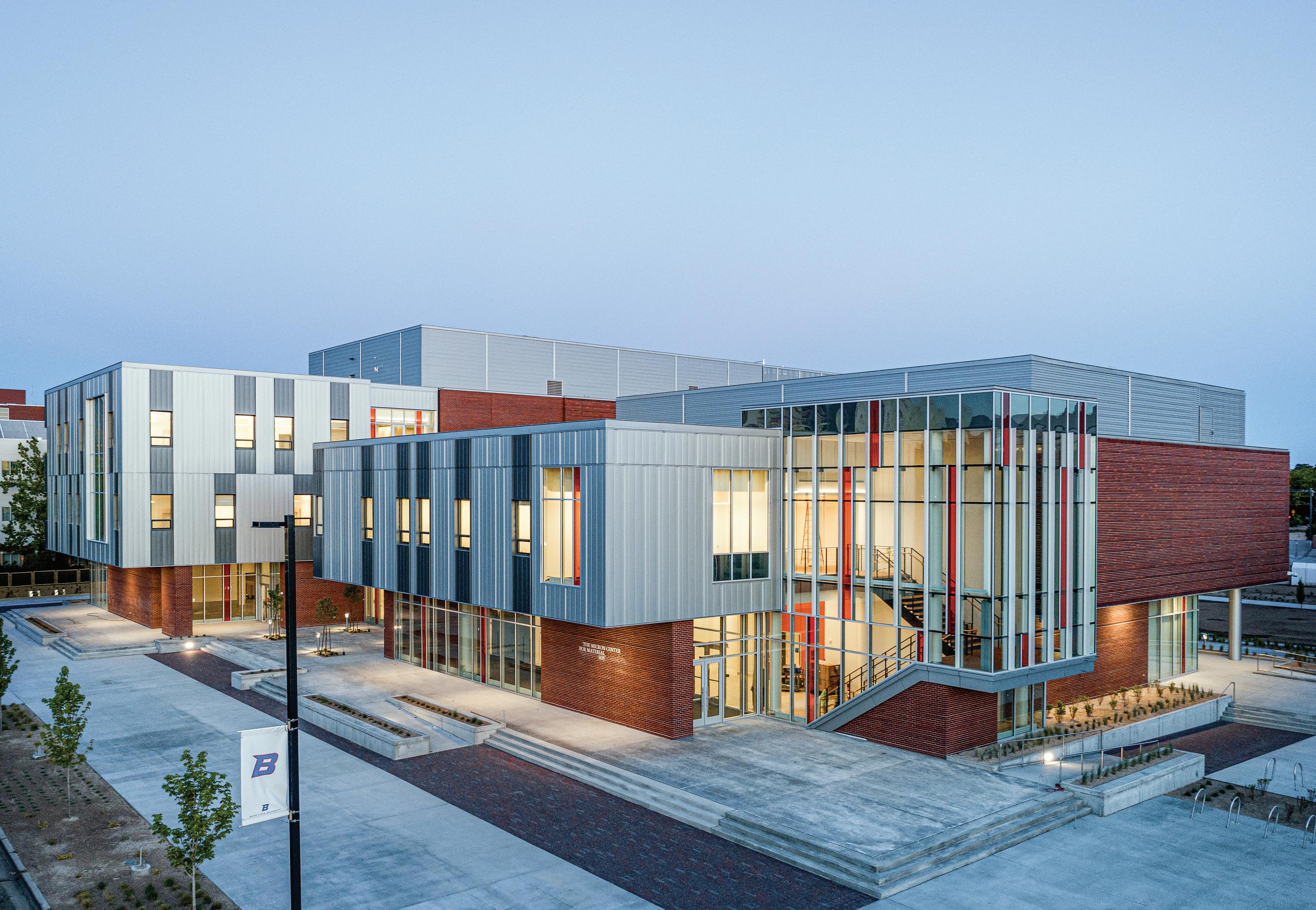 The Micron Business and Economics Building on the Boise State University campus is a four story gateway prominently located along the west entrance to campus. The building’s layout is anchored by a large exterior courtyard flanked by classroom and lecture spaces on three sides allowing access to natural light and views from a majority on teaching and gathering spaces.